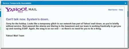 was just thinking to move some of my “accessed over a year ago” files to windows live sky drive when I received this Yahoo Mail is Down funny assuring message.